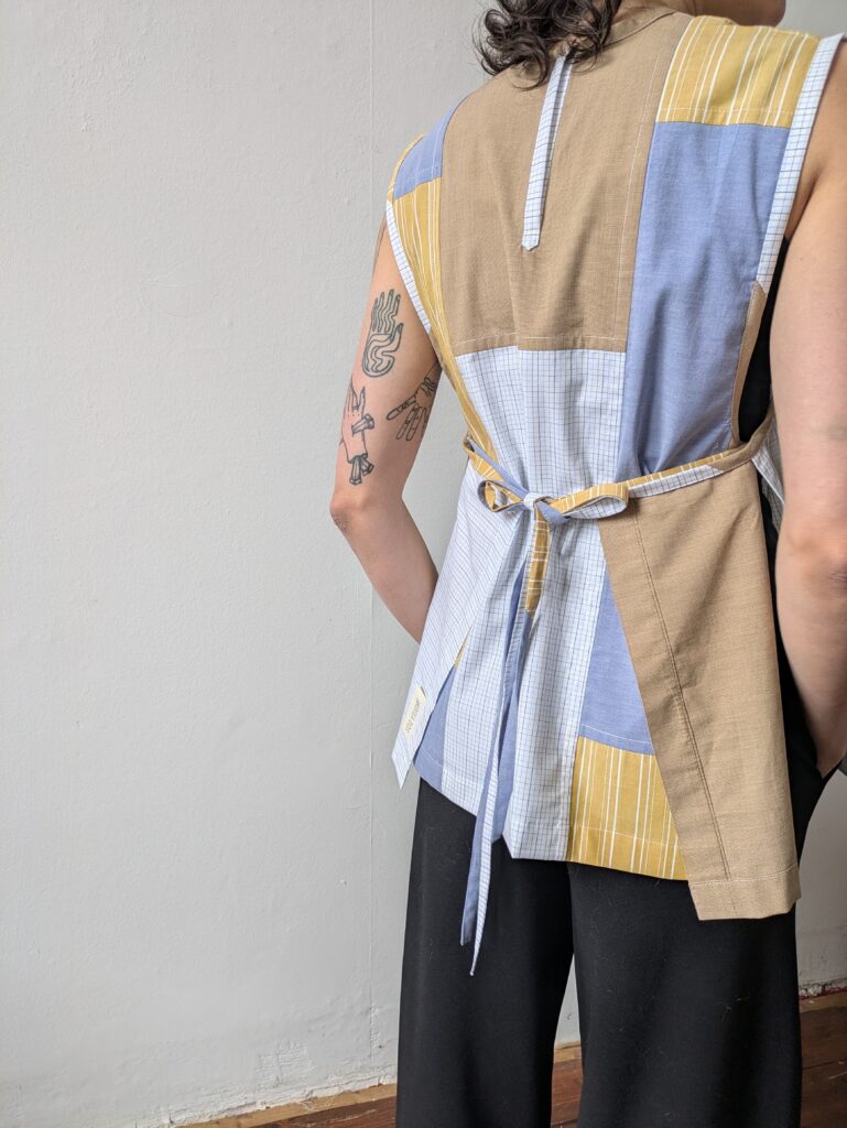 A patchwork of fabrics that came from four blouses that belonged to Melissa’s grandfather.